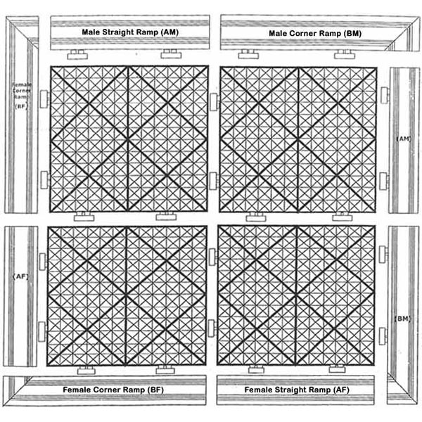 • 2.5″ wide safety ramping easily connects to all sides of Channel Drainage Tile.